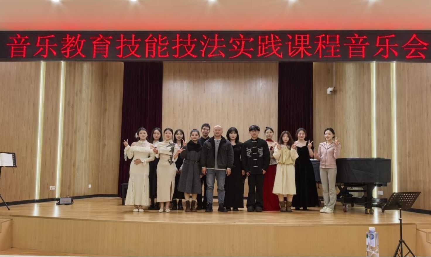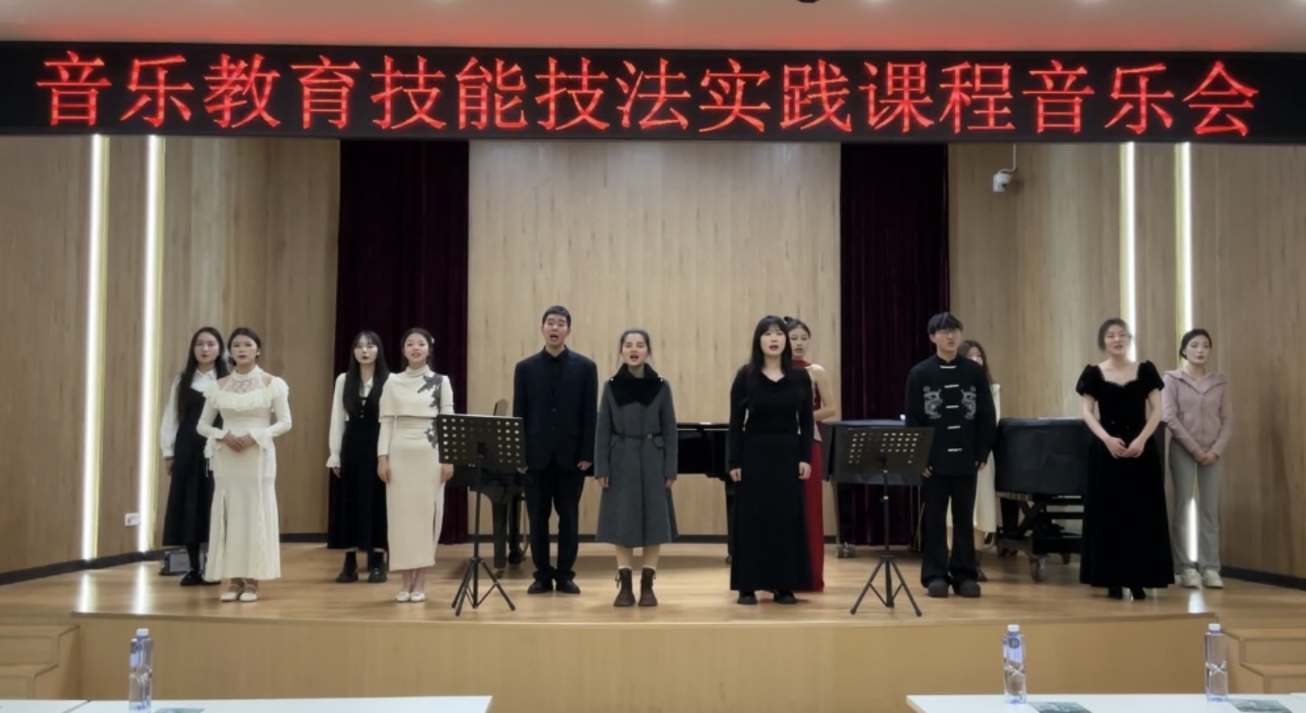 和乐楼104音乐厅成功举办。本次音乐会由课程导师张想以及音乐教育专业学生倾情呈现,全程聚焦湘教版高中音乐教材经典曲目,既是对课程学习成果的集中检验,也是一次将教学理论转化为舞台实践的生动尝试。
